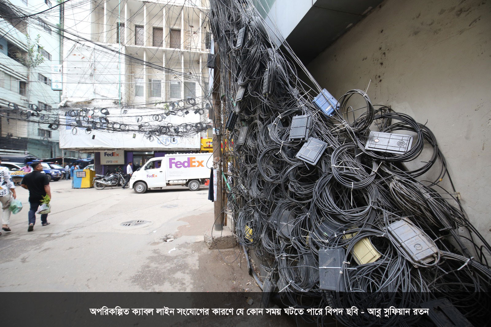 অপরিকল্পিত ক্যাবল লাইন সংযোগের কারণে যে কোন সময় ঘটতে পারে বিপদ ছবি - আবু সুফিয়ান রতন