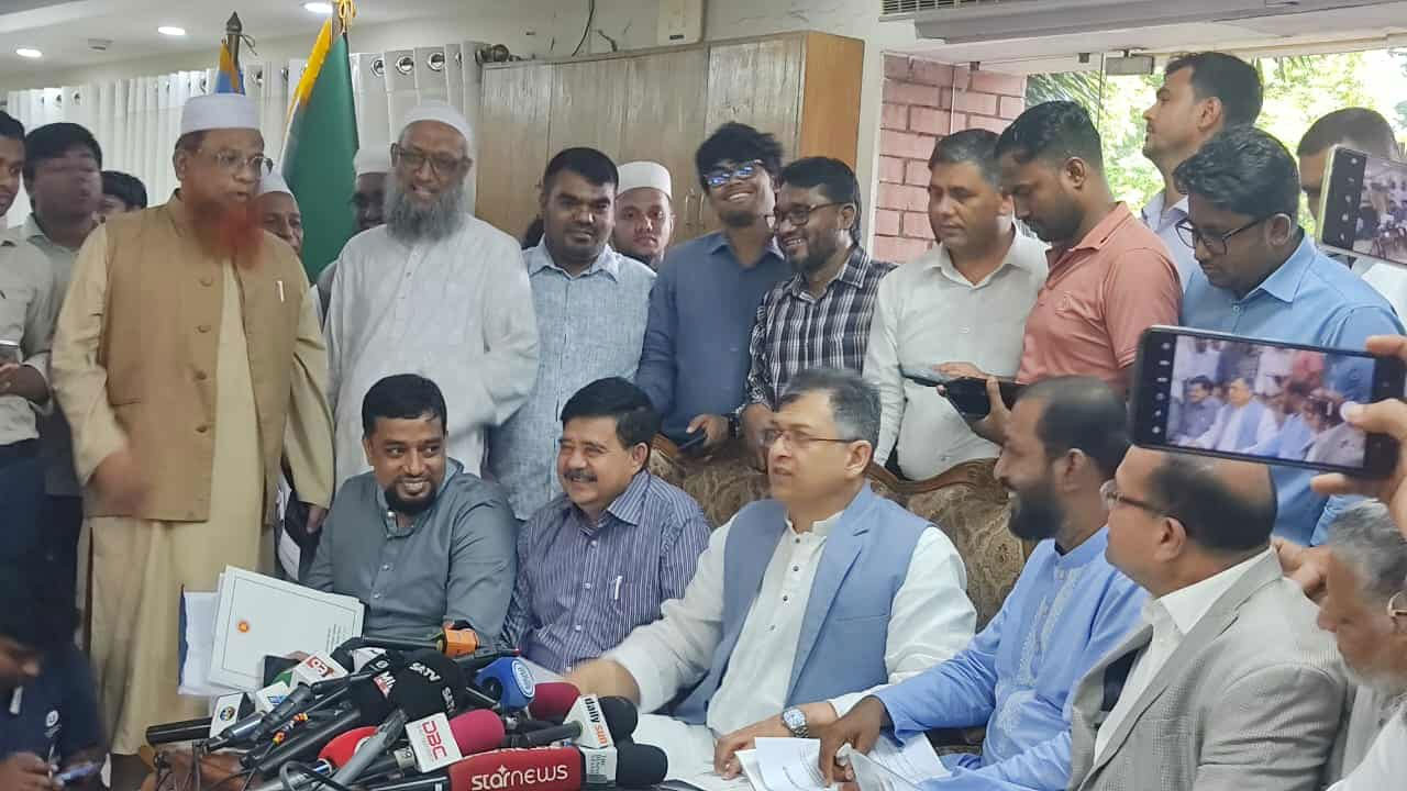 কাশ্মীর, ফিলিস্তিন ও আরাকানের স্বাধীনতার দাবিতে জাতীয় মসজিদ বায়তুল মোকাররমে শুক্রবার জাতীয় বিপ্লবী পরিষদের সমাবেশ। ছবি: আবু সুফিয়ান রতন।