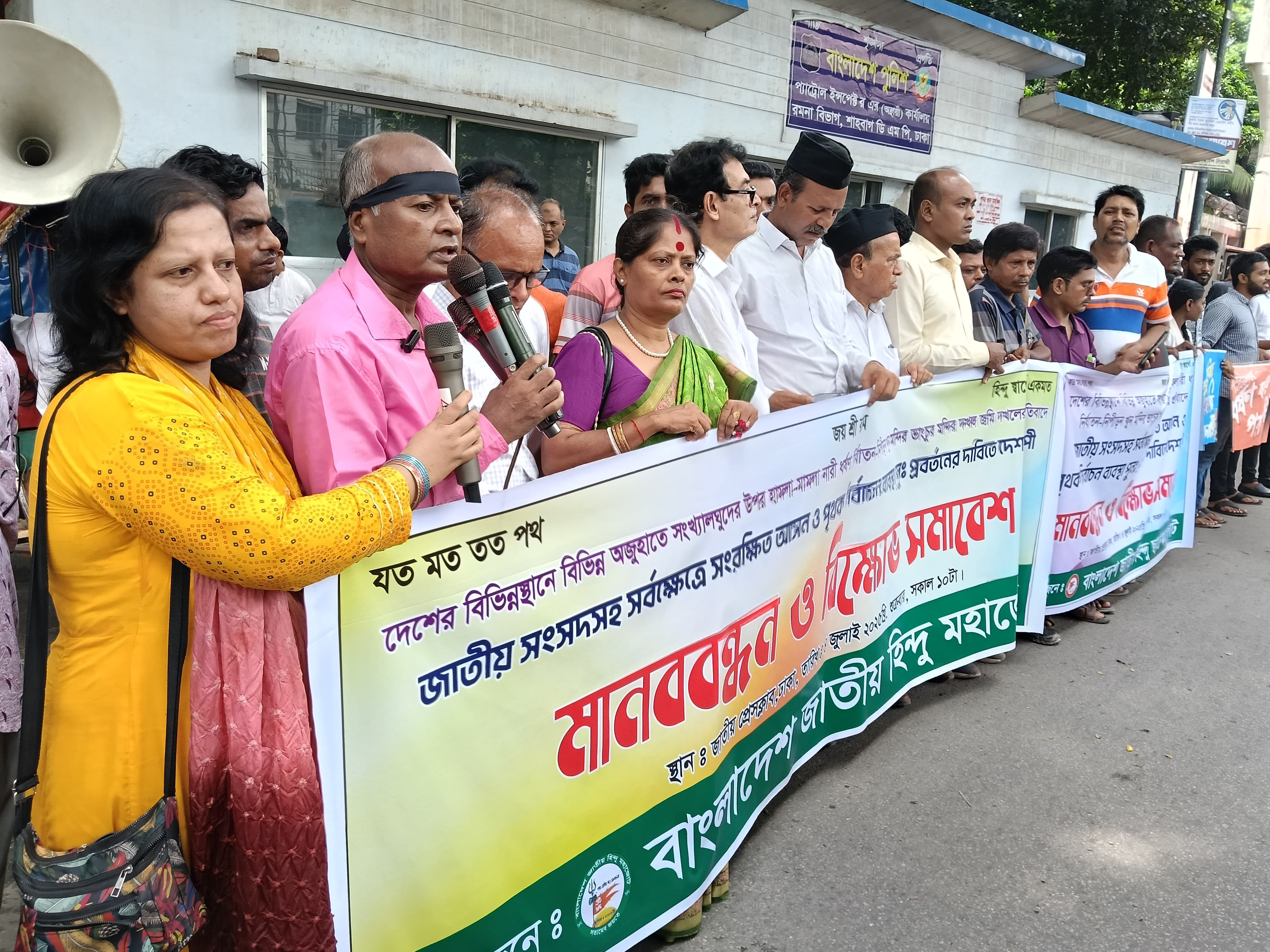 সংখ্যালঘুদের ওপর নির্যাতনের প্রতিবাদে বাংলাদেশ জাতীয় হিন্দু মহাজোটের মানববন্ধন। শুক্রবার জাতীয় প্রেসক্লাবের সামনে। ছবি: আবু সুফিয়ান রতন।